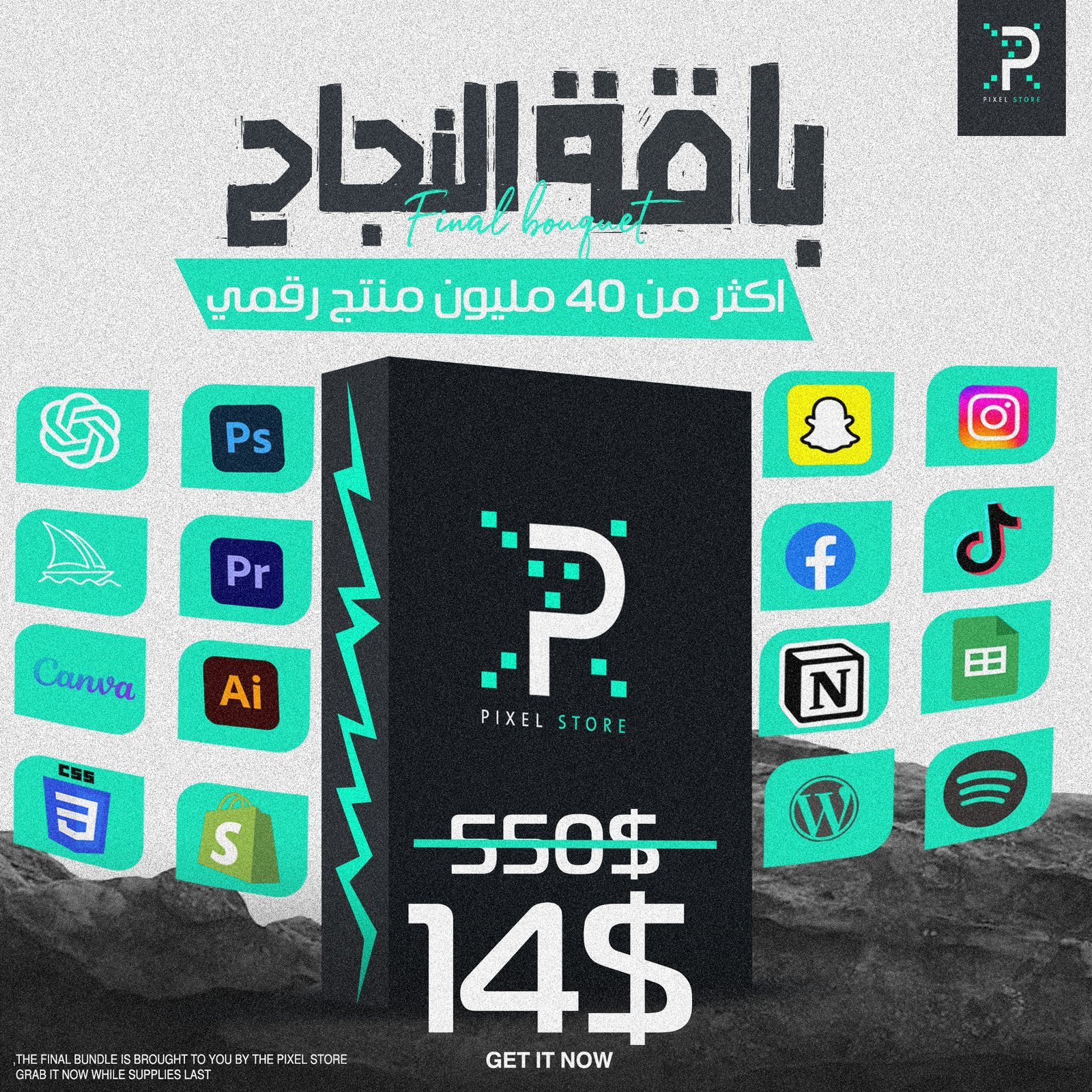 أكثر من 40 مليون منتج رقمي جاهز لإعادة البيع والاستخدام، يشمل أدوات تصميم، كتب إلكترونية، قوالب، مؤثرات صوتية وبصرية، برمجيات، أدوات ذكاء اصطناعي، وغيرها الكثير!